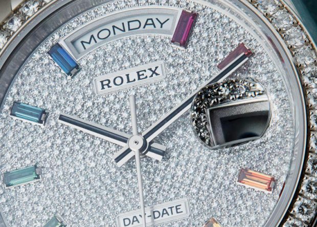 Though the Cosmograph Daytona “rainbow” is the best known and most sought after Rolex with a multicoloured gemstone bezel, the Geneva watchmaker has been making “rainbow” Day-Dates since the 1970s.